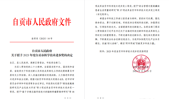 科研成果再突破,我院斬獲2023年度自貢市科學(xué)技術(shù)進(jìn)步獎(jiǎng)2項(xiàng)