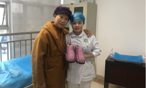 在曾戌老師精心的維護(hù)下,趙阿姨導(dǎo)管周圍皮膚過敏情況好轉(zhuǎn),在寒冬里她親自為她鉤織了一雙充滿感激之情的保暖鞋,平凡的付出之后總有不平凡的感動,寒冷的冬天變得溫暖起來。