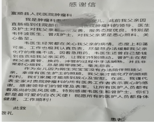 耐心細(xì)致專業(yè)的服務(wù)收到患者家屬的感謝信