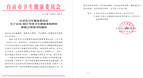 近年來(lái),富順縣人民醫(yī)院始終堅(jiān)持走高質(zhì)量發(fā)展道路,高度重視科研工作,通過(guò)完善管理辦法、開(kāi)展科研培訓(xùn)、進(jìn)行課題孵化、搭建科研平臺(tái)等措施,營(yíng)造濃厚的學(xué)術(shù)氛圍,鼓勵(lì)醫(yī)務(wù)人員開(kāi)展科研。2023年,我院收到各級(jí)各類(lèi)科研課題立項(xiàng)獲批23項(xiàng),創(chuàng)歷年新高!